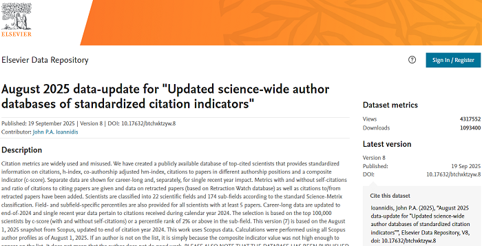 据悉,该榜单是目前全球最具权威性的学者评价体系之一,以Scopus数据库的引用数据为核心依据,综合引用次数、H 指数、HM 因子等 6 项核心指标进行评估。从 22 个学科领域、176 个细分领域的近 700 万名科学家中遴选出排名前 2% 的顶尖学者。榜单同时设置“终身科学影响力(Career-long Impact年度科学影响力(Single-year Impact两类维度,分别衡量学者在职业生涯中的综合学术贡献与近期研究成果的影响力。