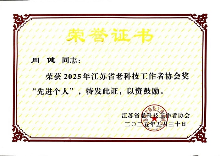 近日,江苏省老科技工作者协会2025年度先进个人评选结果揭晓,体育投注网站关工委骨干成员周健教授荣获“先进个人”表彰。