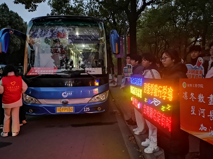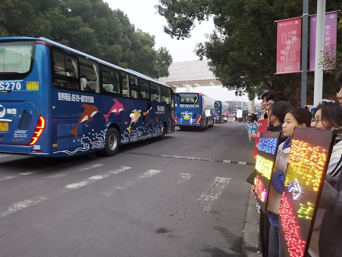 体育投注网站 通过多种方式做好服务工作,提醒考试注意事项,叮嘱大家带齐证件和必备物品。送考志愿者在大巴上车点举起电光加油板,为毕业班考研同学加油鼓劲,送上温暖的祝福。体育投注网站 现场核对学生名单,组织有序上车,鼓励同学们沉着冷静,不负努力,轻松赴考。