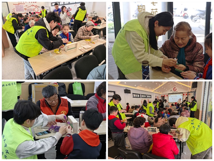 DIY手工制作环节,现场气氛愈加热烈。志愿者耐心细致地指导孩子们和老人完成手工作品。拼接、粘贴、造型……每一个动作都承载着陪伴与交流,每一次互动都拉近了彼此的距离。手工不仅是技能的传递,更是情感的交融,成为代际之间最温暖的语言。