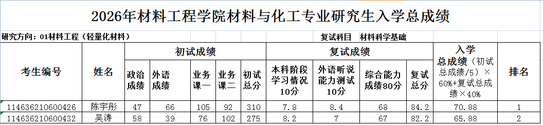 2026年体育投注网站 材料与化工专业研究生入学总成绩公示