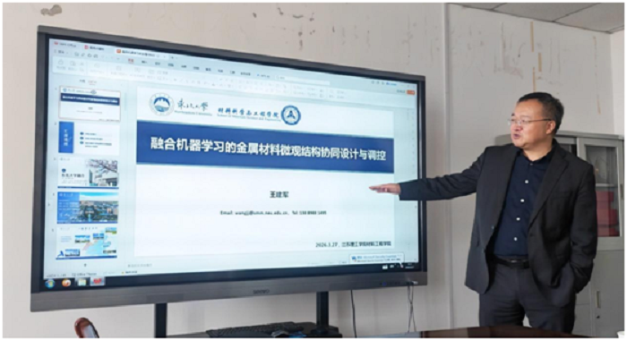 3月27日上午,东北大学材料科学与工程体育投注网站 院长、博士生导师王建军教授应邀莅临体育投注网站访问交流,在知行楼512会议室作“融合机器学习的金属材料微观结构协同设计与调控”专题学术报告。